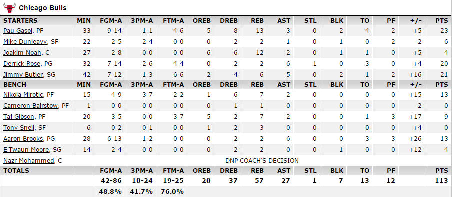 公牛隊本來就是很會搶籃板的球隊,場均能搶45.6個,在聯盟排名第6,這場搶了57個,比平均值更多了11個。