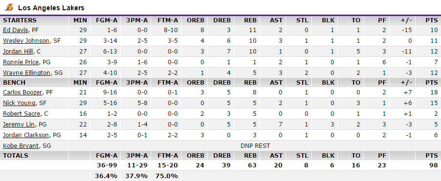 林書豪出賽22分鐘,投8中2,三分球投4中1攻5分,5籃板,7助攻,1抄截,3阻攻,2失誤,3犯規,-3