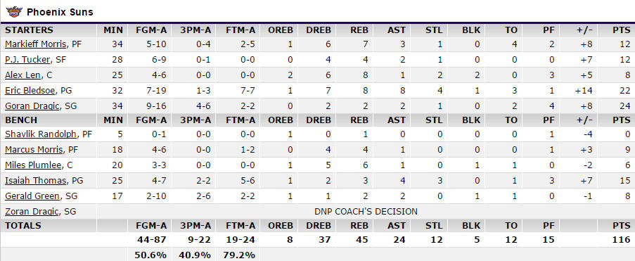 因此,將身高更具有優勢的1年級菜鳥連恩(Alex Len)拉上來先發,以爭搶籃板為主,由於兩位中鋒都各具有特色,但連恩的得分效率更優於普拉姆利,所以,在禁區的調整收到不錯的成效。
