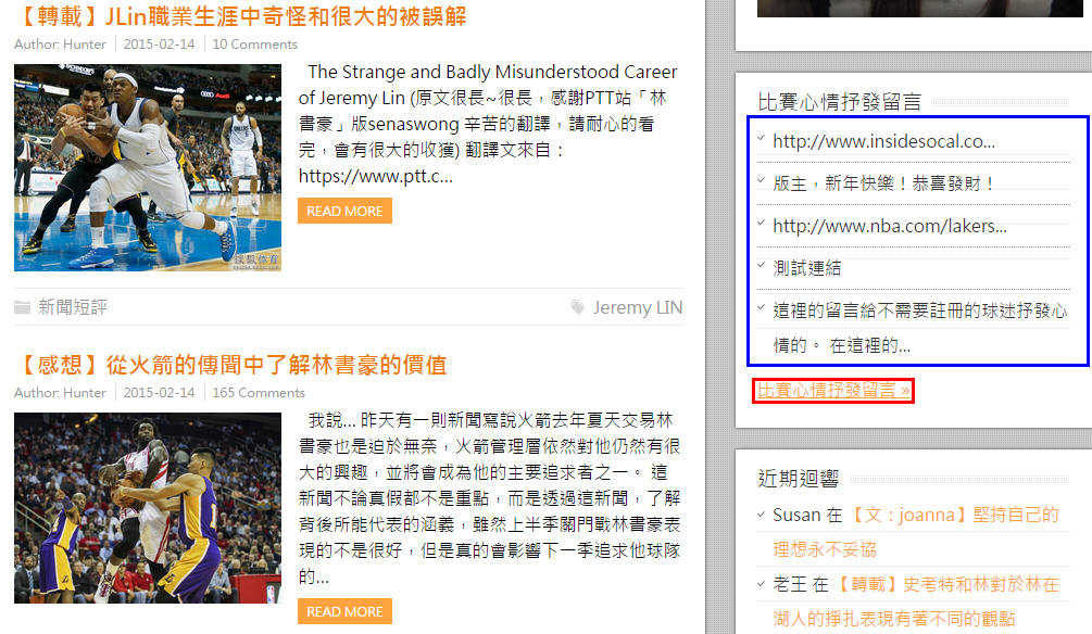 留言純粹給抒發用的,高興談比賽、林書豪及一些小道消息都沒關係,大家也不用針對留言去筆戰,我每天都會去看,但不一定會回留言。