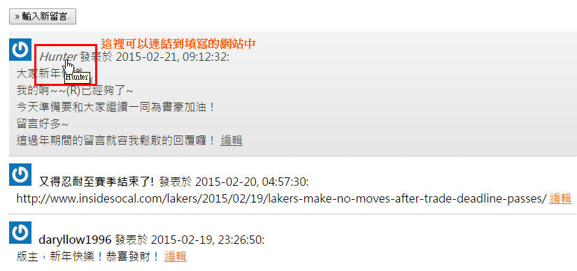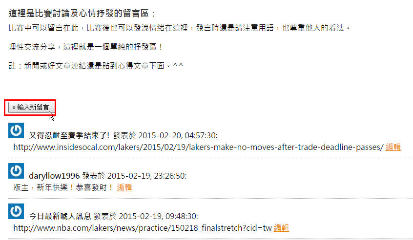 還有就是休季期間或像明星賽期間,都可以在這裡留言的。