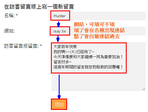 如果你有網站,或是留言的消息有新聞連結,可以在網站這裡填寫,不需要填寫到留言區。