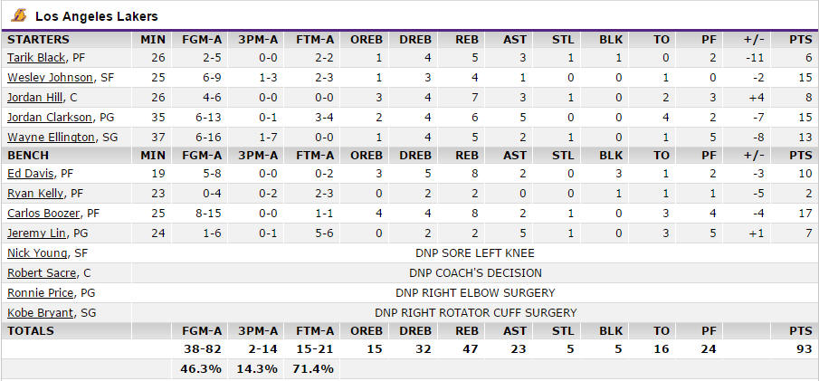 戴維斯表現最好,上場時間卻最少(19分鐘),在有限的時間裡投8中5攻下10分8籃板及3火鍋的精彩表現。(林書豪送2助,其中一記精彩空接及一個精彩背後傳球)