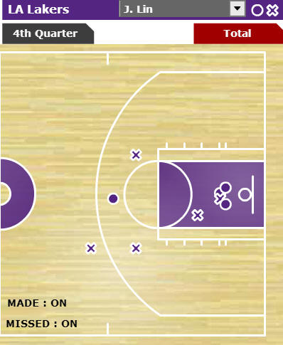 第二節8:52林書豪快攻從左上籃,被打眼,女裁判的站位左上方沒吹。讓林書豪多一個出手沒進的記錄。