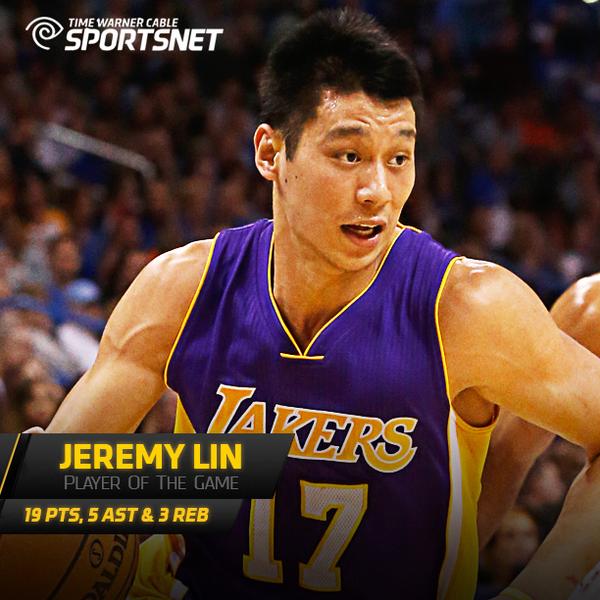 Jeremy Lin came up huge in tonight’s #Lakers win and gets the honor as Player of the Game.