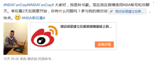 引用翻譯出處連結:【#NBAFanDay活動 書豪微博的問答】