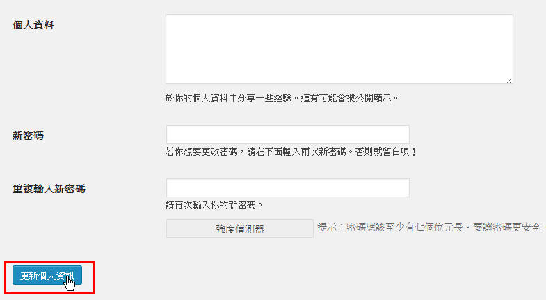 什麼都不用設定,只要移到最下面按一下「更新個人資訊」即可。(如下圖所示)