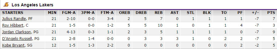 林書豪終場拿17分,全隊最高,出賽時間25分鐘也是全隊最高,當然,最重要的是,林書豪沒讓教練及球迷們失望,17分7助攻,三分球投4中2,全場出現的2次失誤都在上半場。