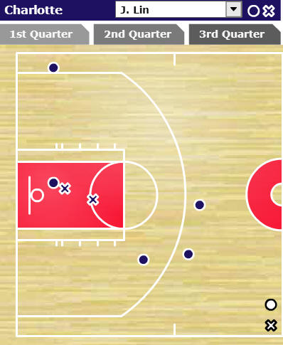 林書豪熱身賽首度先發,主要目的是為了測試更多的可能,過去三戰林書豪大部份出手的位置都集中在右邊,這是教練為林書豪設計他所熟悉的出手位置,希望讓林書豪在熱身賽時一開始就能找到感覺,但這一場,很多戰術都讓林書豪的出手攻擊更全面,不在只是侷限在右邊,全場投7中5,其中三分球投3中3,可惜比分拉太開了,加上半場犯規太多,因此早早就下來,上場時間是先發裡最少的,全場攻13分,在全隊排第三。