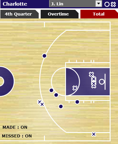 最後統計一下,例行賽打了25場,林書豪本季出手10次以下(包含10次)的比賽居然有20場,黃蜂是10勝10敗,而超過11次以上的是5勝0敗的,我說這會不會是克總想呈現的情況呢?