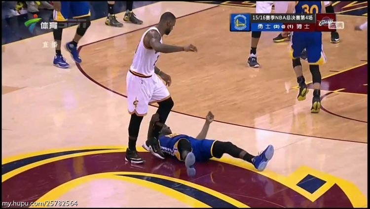 至于格林和詹的冲突,首先是格林上来移动掩护甚至推搡詹,库里差点得到3分出手机会,但裁判又一次不吹罚这种明显的掩护犯规。导致格林和詹进一步纠缠,大家可看慢动作回放,格林先出右手推詹,詹出左手格挡,格林(疑似假摔)倒地,横躺地面并大张双手找裁判要哨,同时右手有拉拽詹左小腿动作,此时裁判仍未响哨,而球已到一哥手中并形成突破,詹急于回防,左腿被格林拉住,右腿顺势跨过格林,格林气急,击打詹胯下。詹并未失去理智,转身与之口角理论,没有进一步的肢体动作。