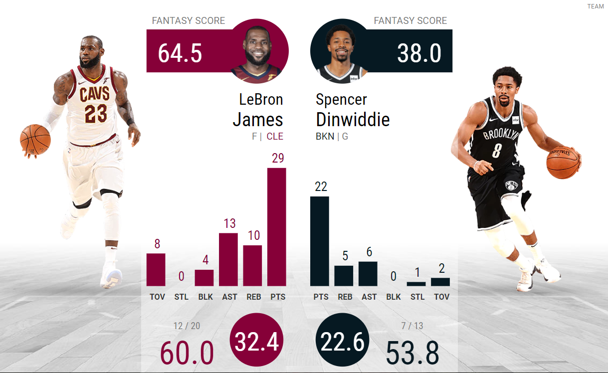 團隊二分命中率: 籃網5成20(第10) vs 騎士5成36(第7)